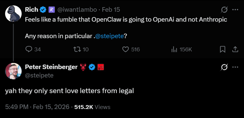 🐌 Создатель OpenClaw Питер Штайнбергер присоединился к OpenAI. Там он хочет продолжить заниматься ИИ-агентами и сделать их максимально простыми, «чтобы ими могла пользоваться даже мама». OpenClaw при этом останется открытым, бесплатным и перейдет под контроль специального фонда.