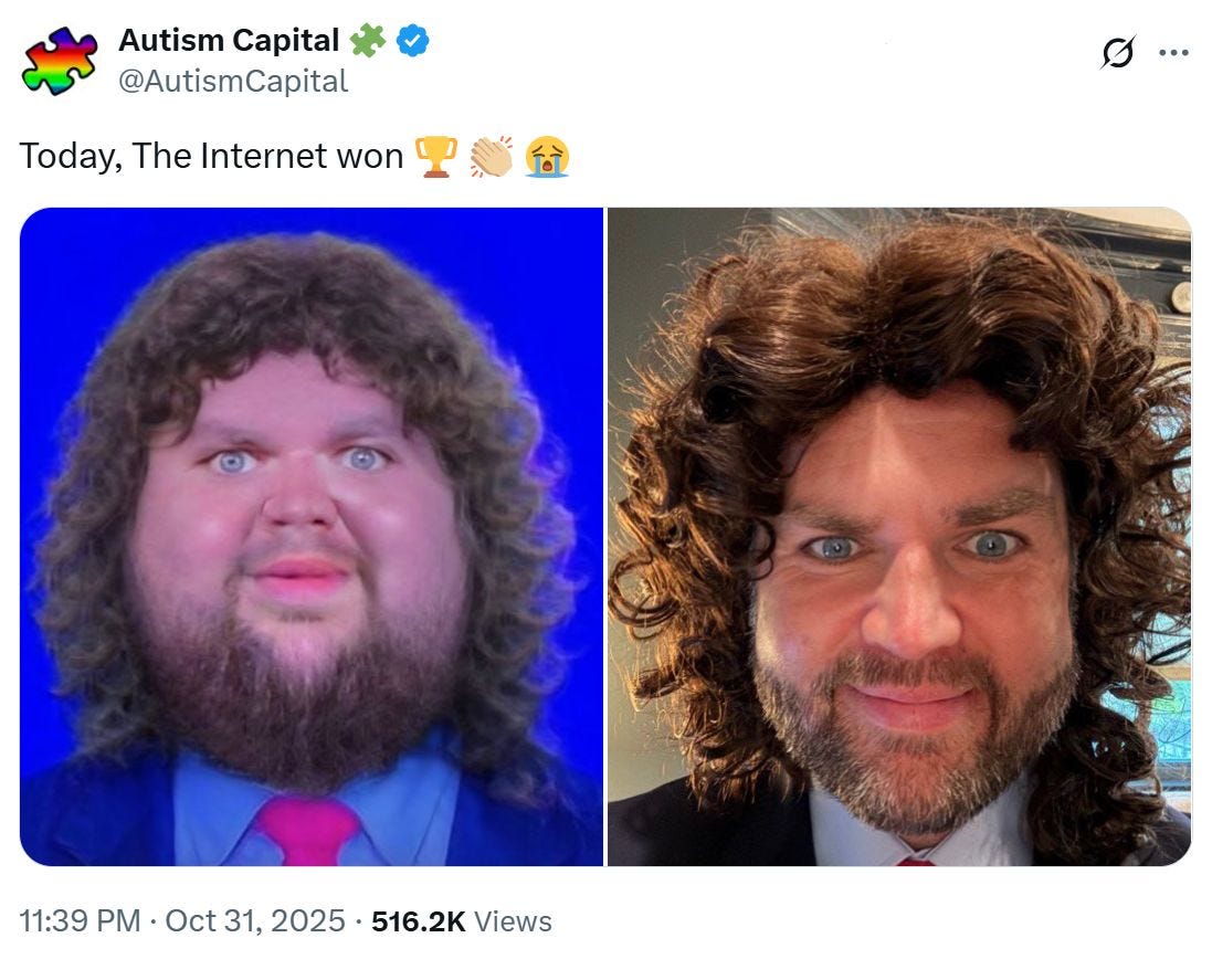 🐌 Основных кандидата два. Во-первых, Джей Ди Вэнс (вице-президент США) закосплеил всратый мем с самим собой:
