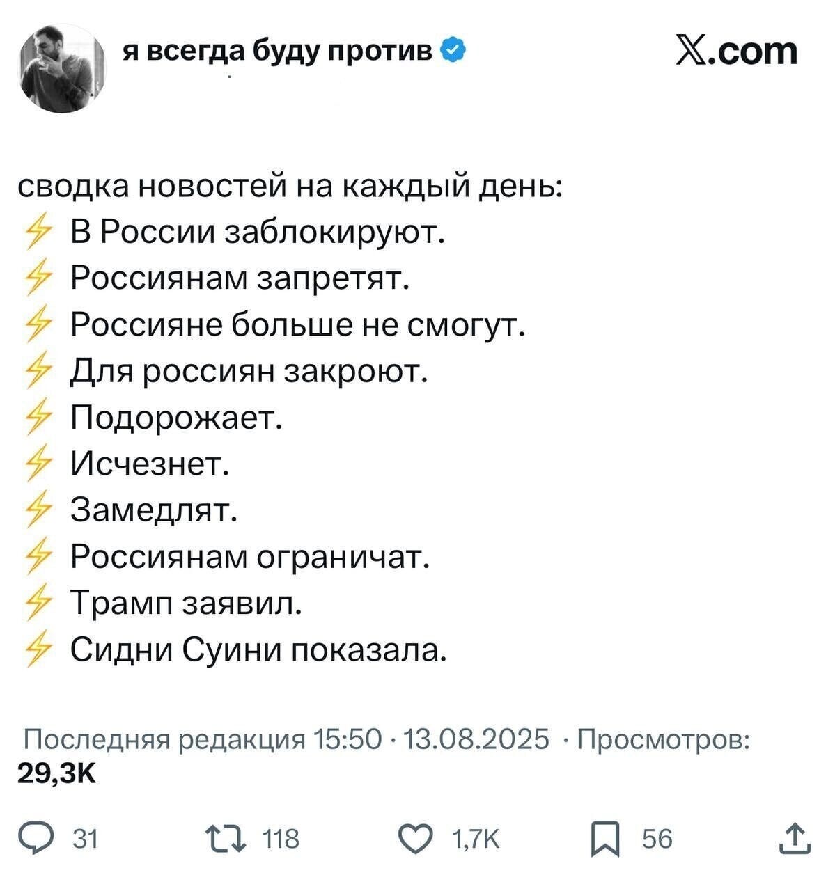 🐌 Кроме того, российские платформы обязали не пускать пользователей с включенным VPN – в противном случае им грозит исключение из «белых списков» и лишение IT-льгот. Обе эти меры, согласно Forbes, приняты исходя из закрытого поручения президента (но Пескову об этом, как обычно, ничего не известно).